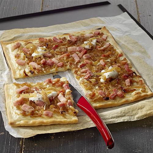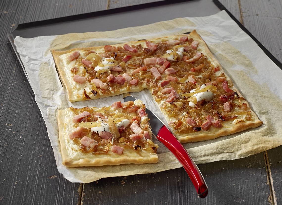 Faites cuire la flammekueche 12 à 15 minutes au four à 200 °C.